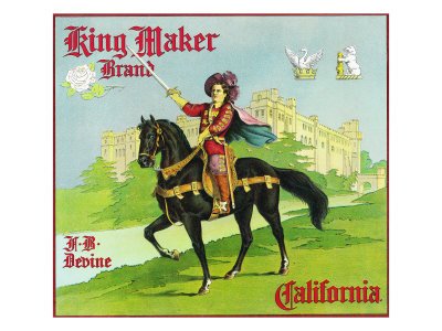 - California, King Maker Brand Citrus Label is a fine art giclee print, which uses a specialized printer to deliver a fine stream of ink onto archival paper. It results in museum-quality art of incredibly vivid color, depth and resolution. Browse at your leisure. 100% Satisfaction Guaranteed.